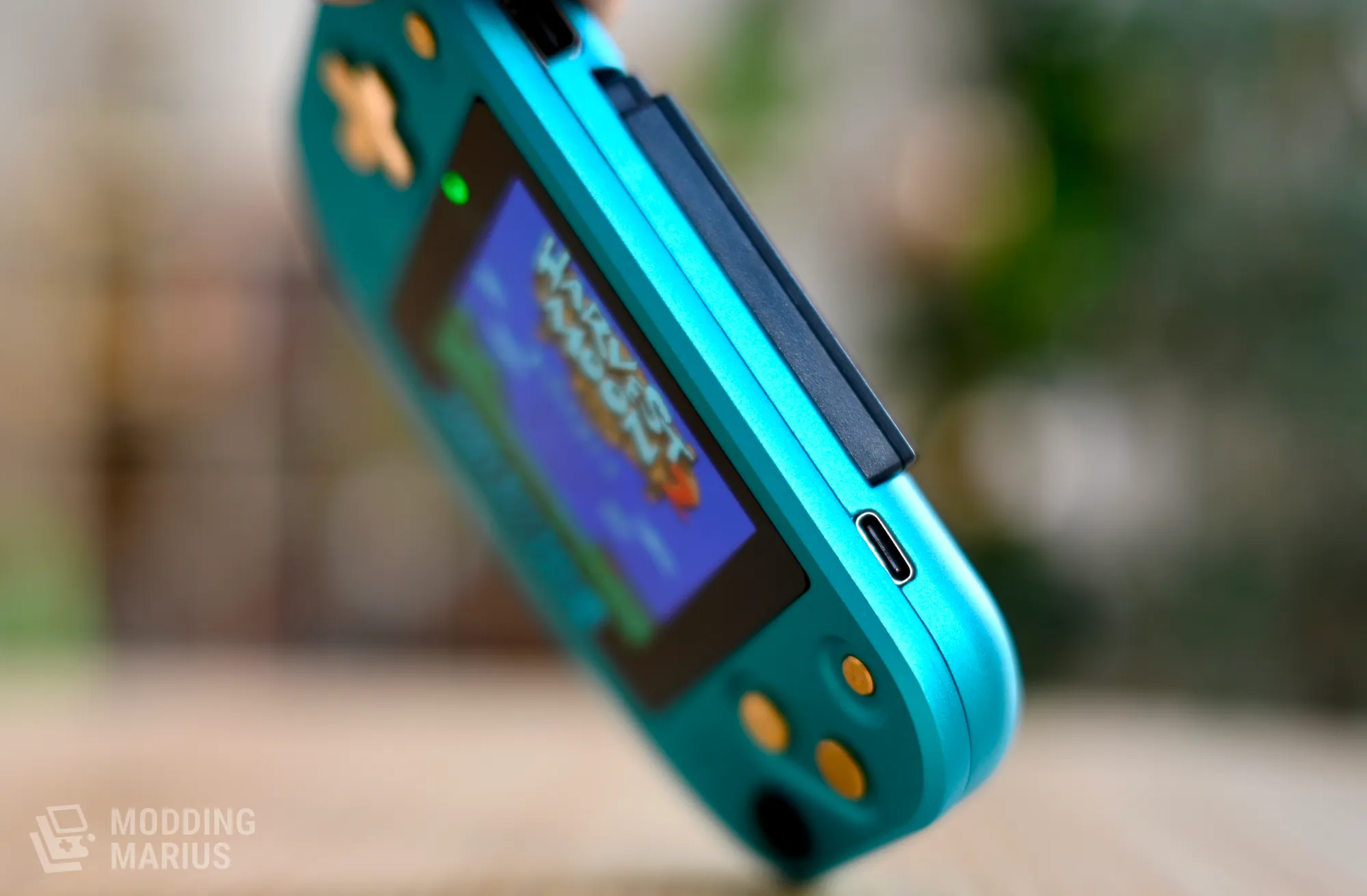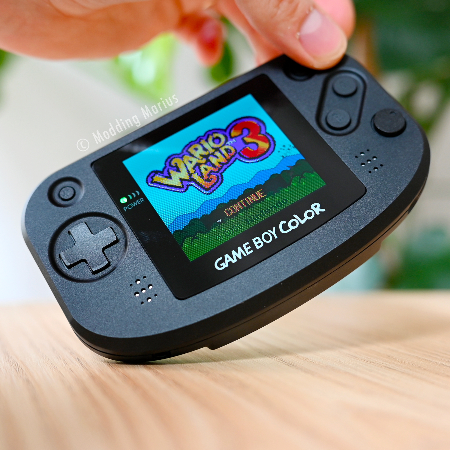 Sa construction nécessite une Game Boy Color originale sur laquelle je prélève des composants tel que le CPU et la RAM, pour les souder sur un nouveau PCB avec d’autres composants neufs. L’écran est le dernier écran AMOLED sorti avec le logo éclairé.
